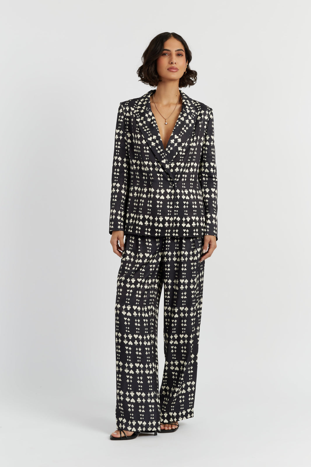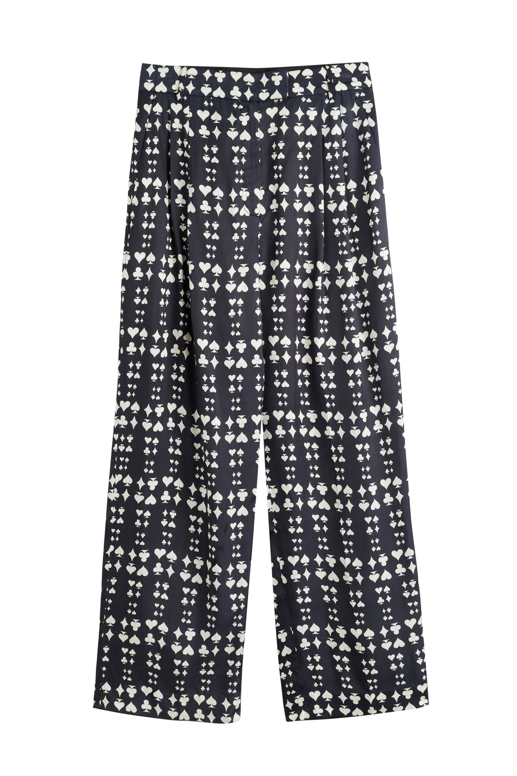 The Black Queen of Hearts Trousers is a Wide Leg.