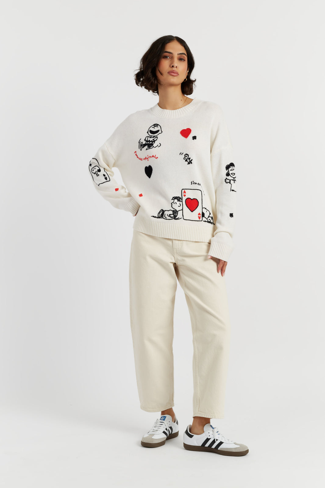 The Cream Wool-Cashmere Charlie's Poker Pals Sweater is a Relaxed.