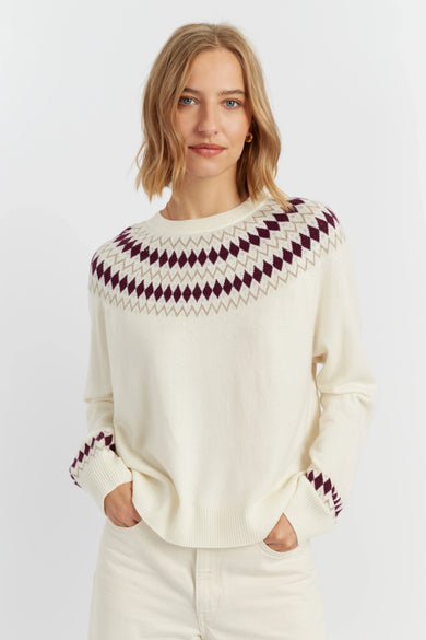 The Cream Wool-Cashmere Fair Isle Sweater is a Relaxed.