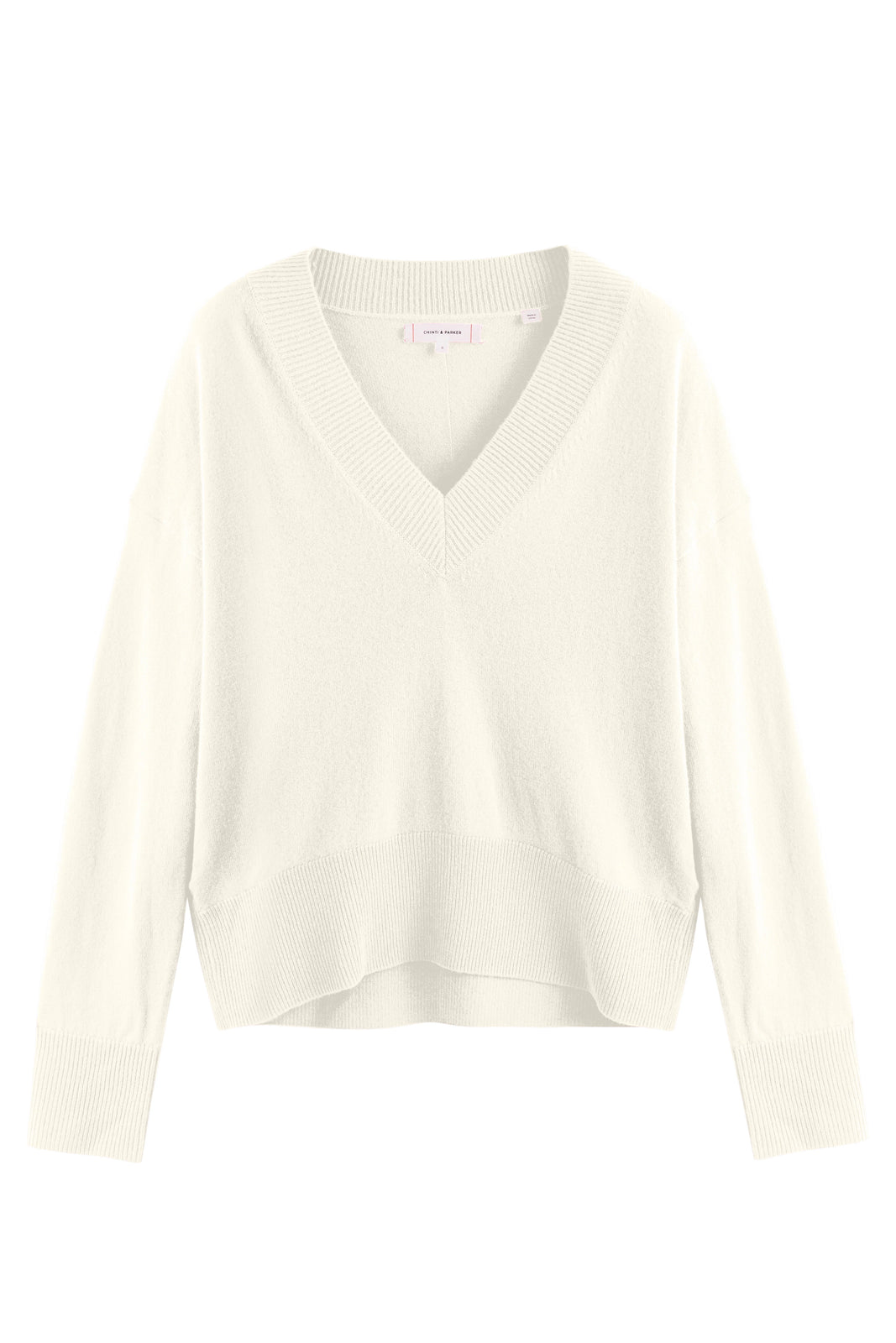 The Cream Wool-Cashmere V-Neck Sweater is a slouchy.