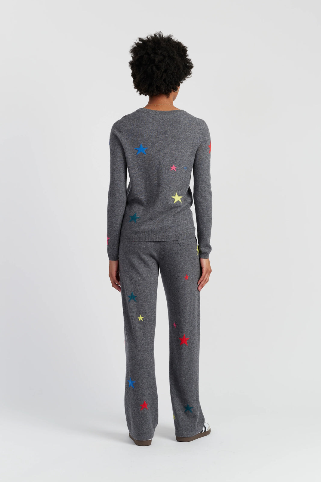 The Grey Wool-Cashmere Star Track Pants is a Wide Leg.