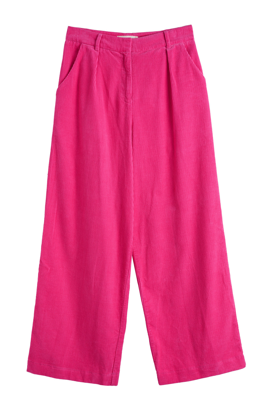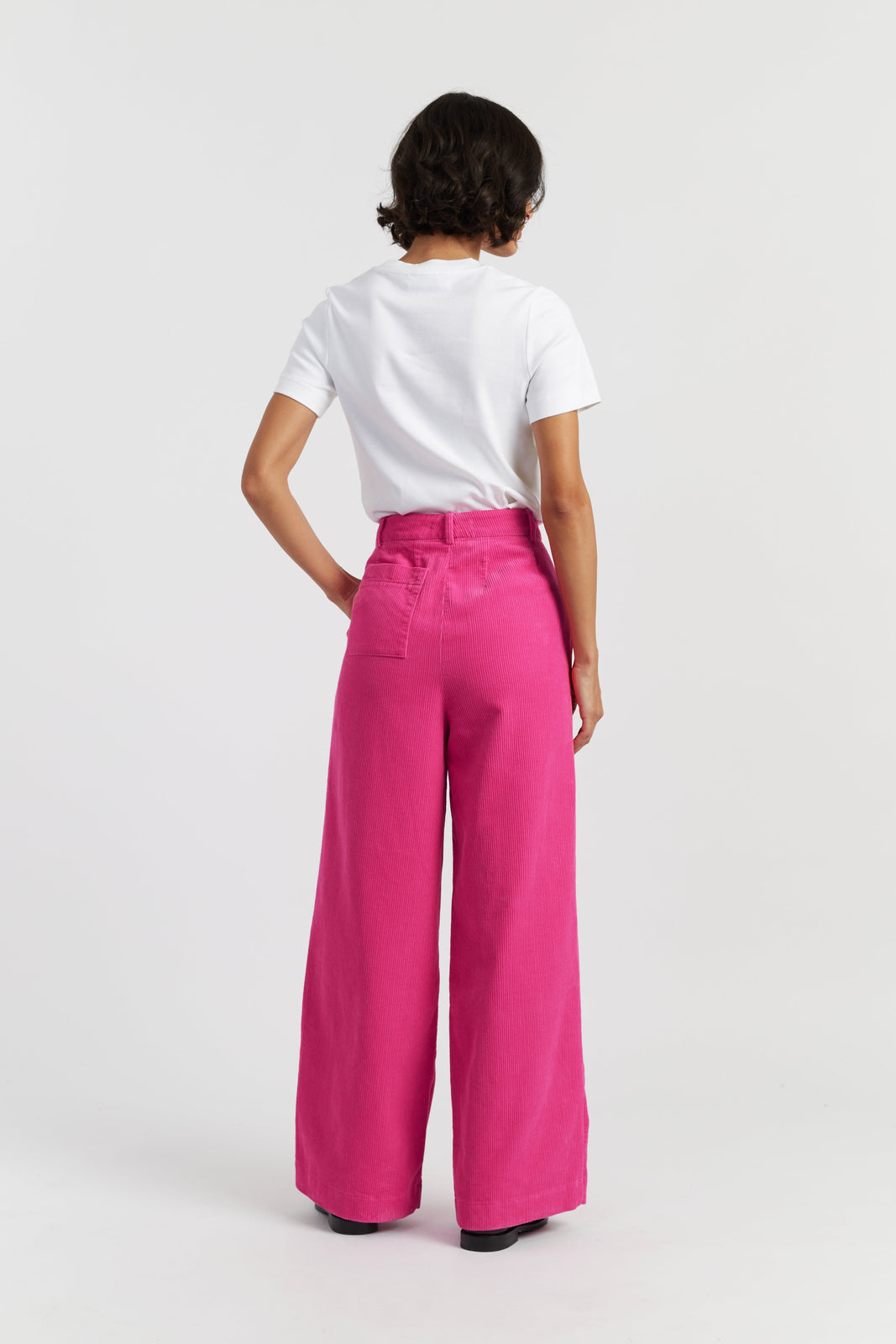 The Hot-Pink Cotton Corduroy Trousers is a Wide Leg.