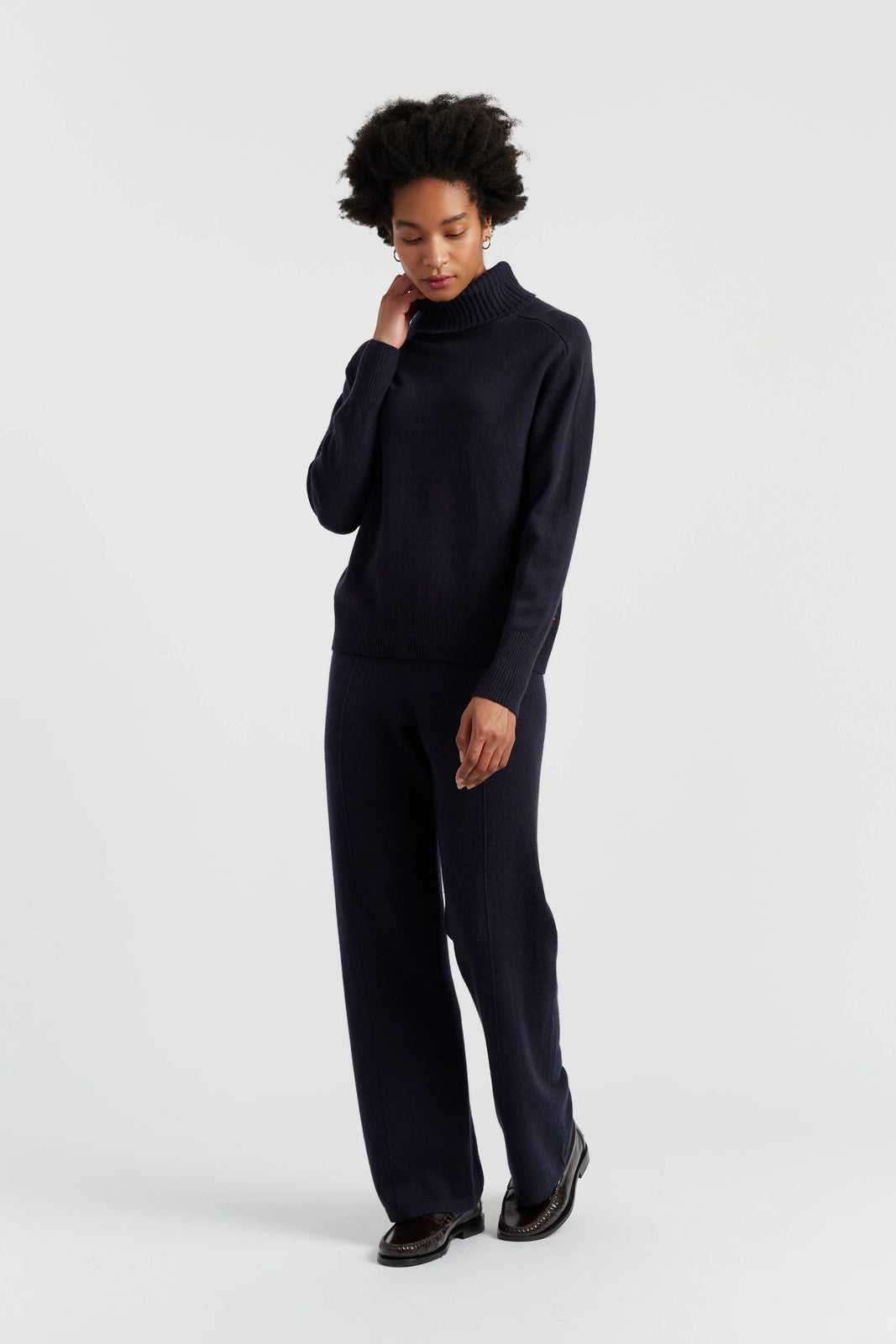 The Navy Wool-Cashmere Raglan Rollneck Sweater is a Relaxed.