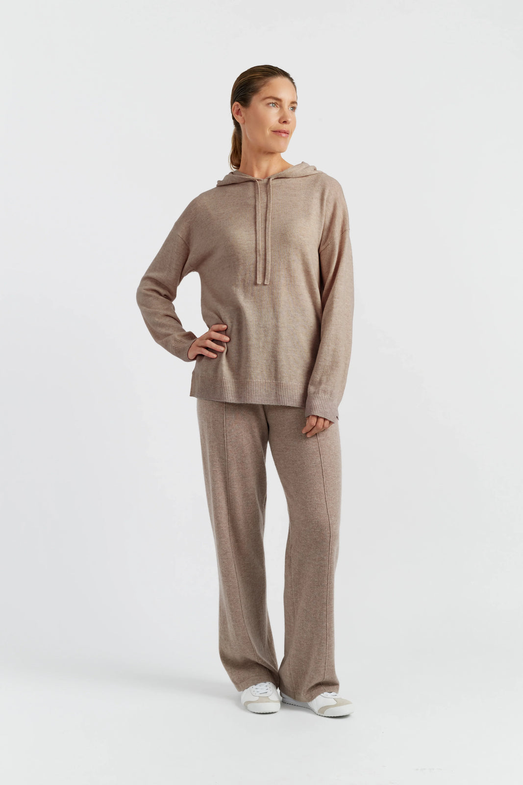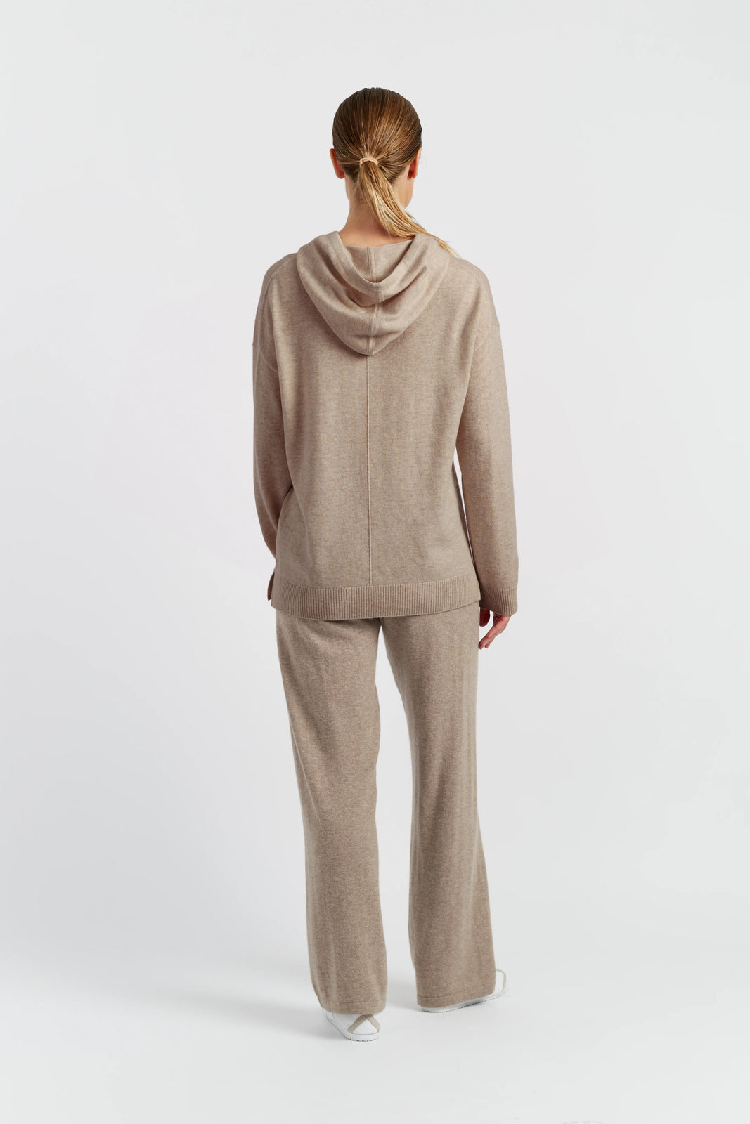 The Warm-Oatmeal Wool-Cashmere Relaxed Hoodie is a Oversized.