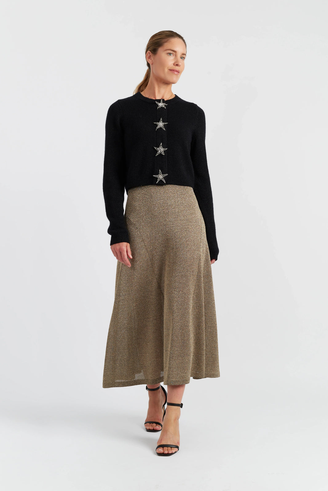 The Black Wool-Cashmere Shooting Star Cardigan is a Slim.