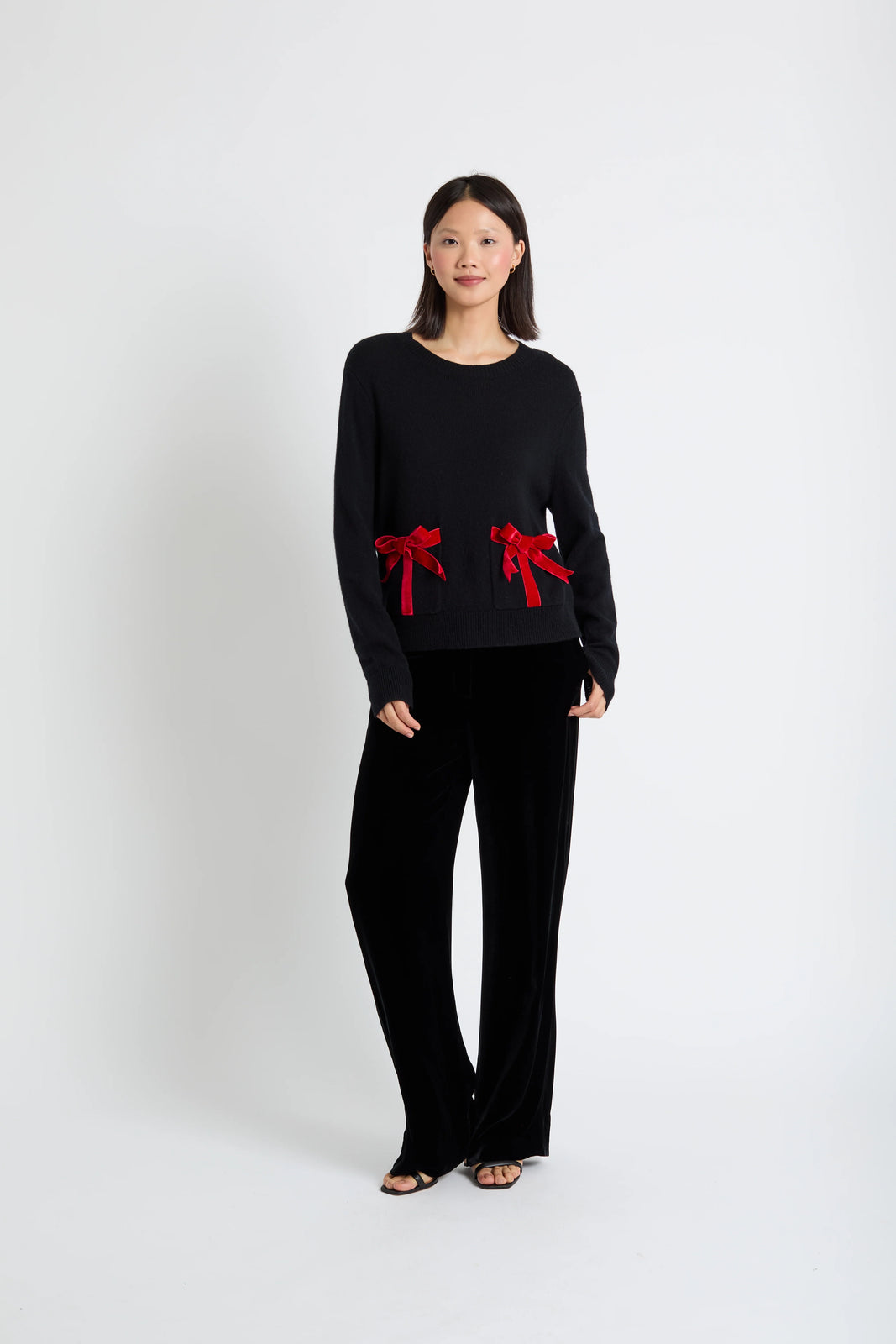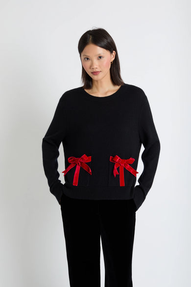 The Black Wool-Cashmere Velvet Bow Sweater is a Classic.