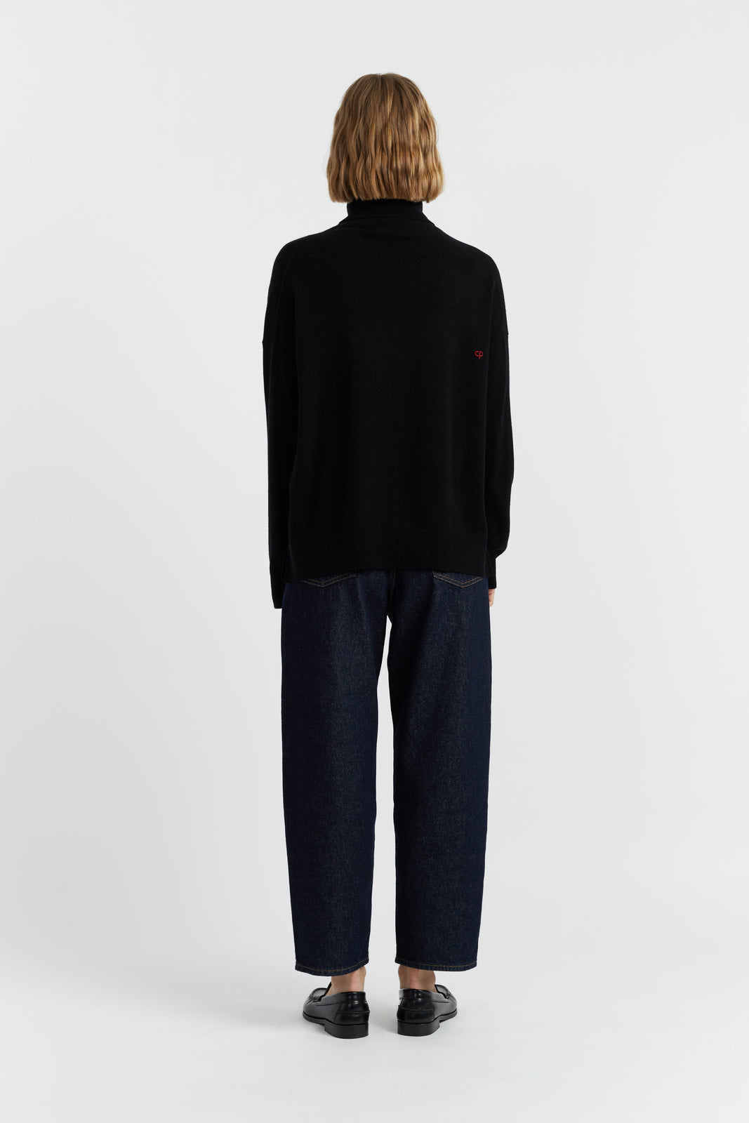 The Black Wool-Cashmere Heart Breton Rollneck Sweater is a Slouchy.