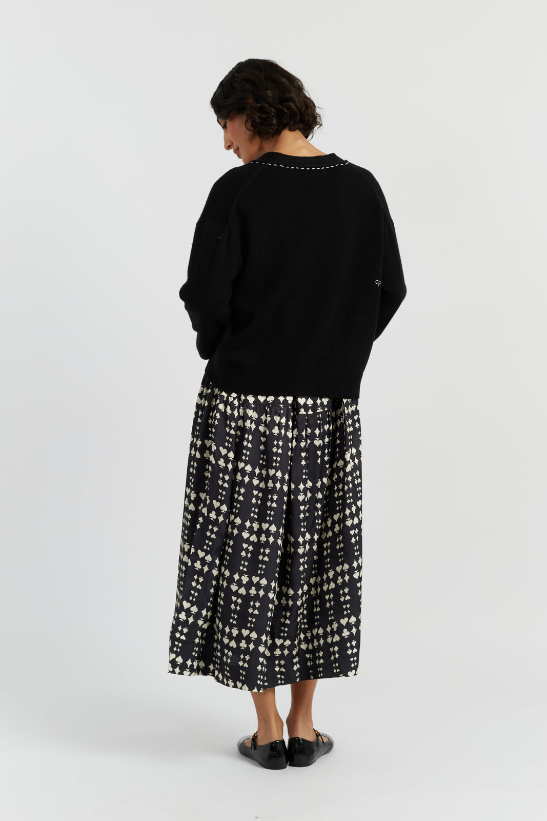 The Black Wool-Cashmere Queen of Hearts Cardigan is a Relaxed.