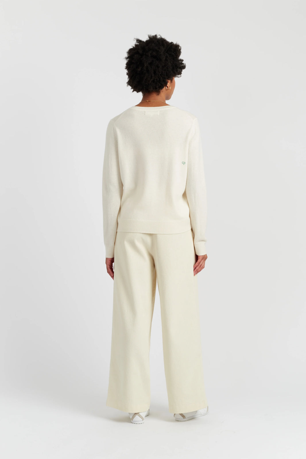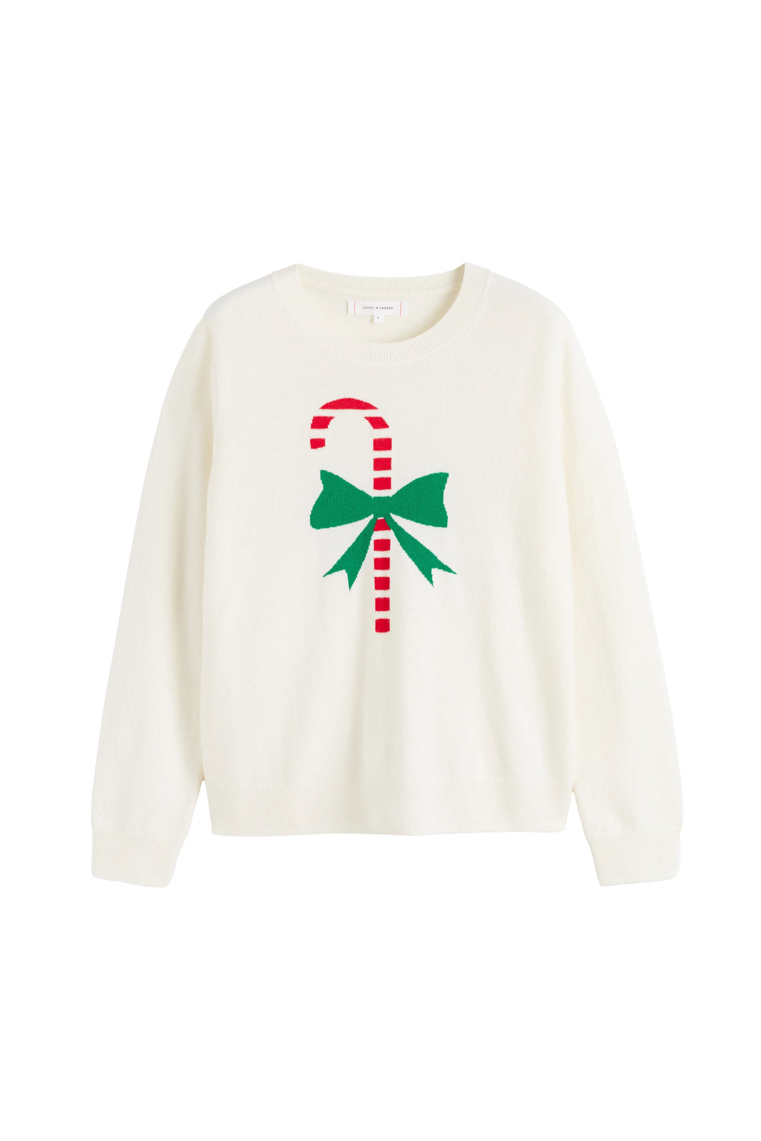 The Cream Wool-Cashmere Candy Cane Sweater is a Classic.