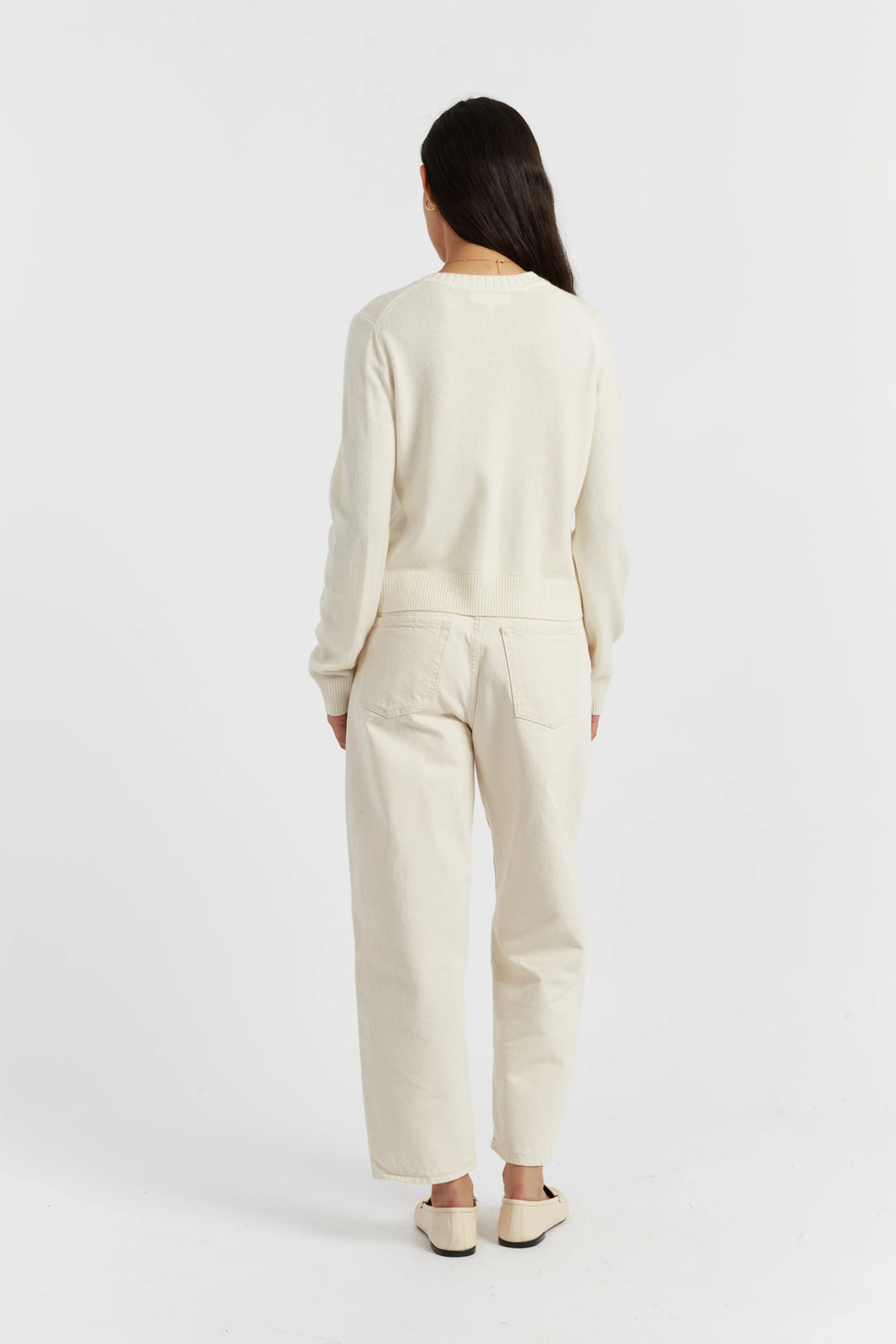 The Cream Wool-Cashmere Crew Neck Cardigan is a Classic.