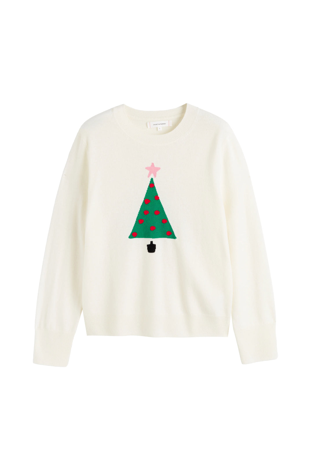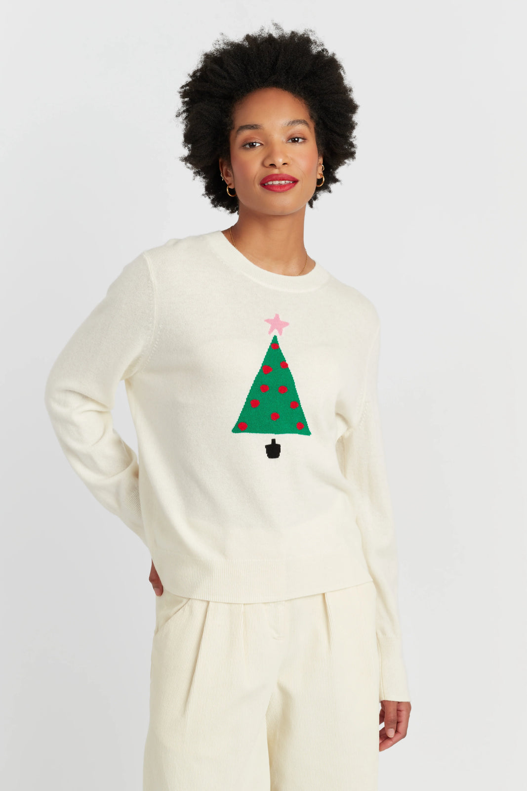 The Cream Wool-Cashmere Xmas Tree Sweater is a Classic.