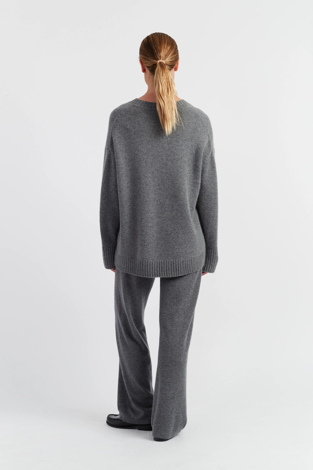 The Mid-Grey Pure Cashmere Chunky Crew Neck Sweater is a Oversized.
