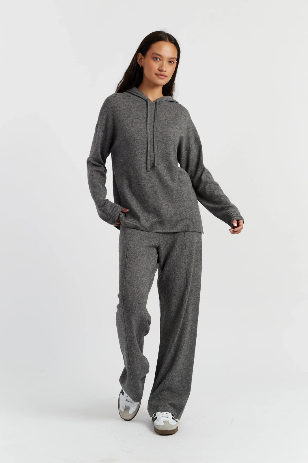 The Grey Wool-Cashmere Relaxed Hoodie is a Oversized.