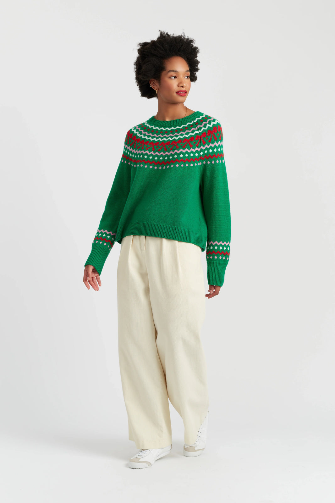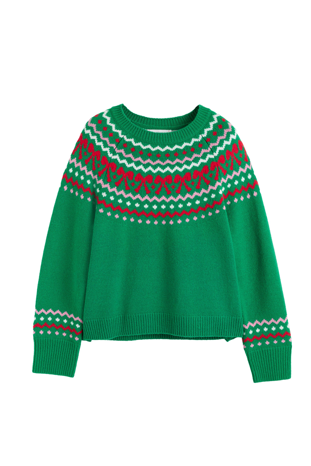 The Jolly-Green Wool-Cashmere Bow Fairisle Sweater is a Relaxed.