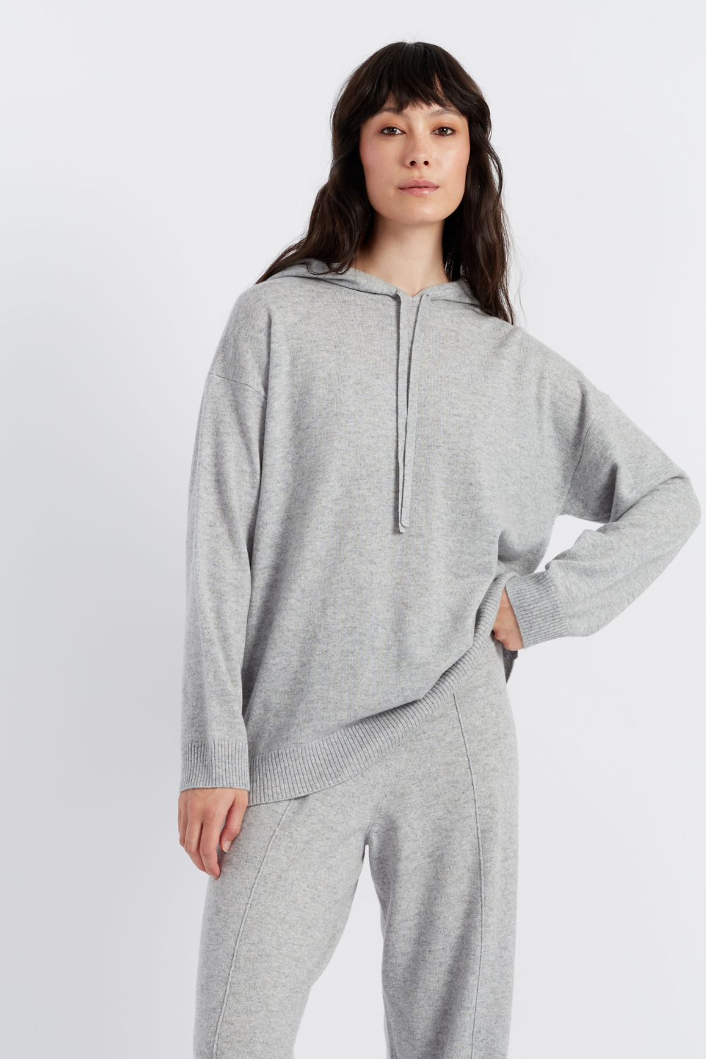 The Light-Grey Wool-Cashmere Relaxed Hoodie is a Slouchy.