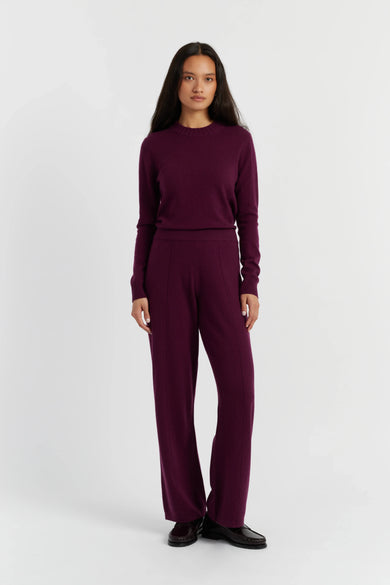 At Chinti and Parker, we believe that wide-leg track pants are a true wardrobe staple. This pair, finely knitted from a blend of wool and cashmere, is part of our Basics collection. They feature a ribbed waistband and sporty seams through the centre of the legs. You can’t go wrong with the seasonal purple colourway.
