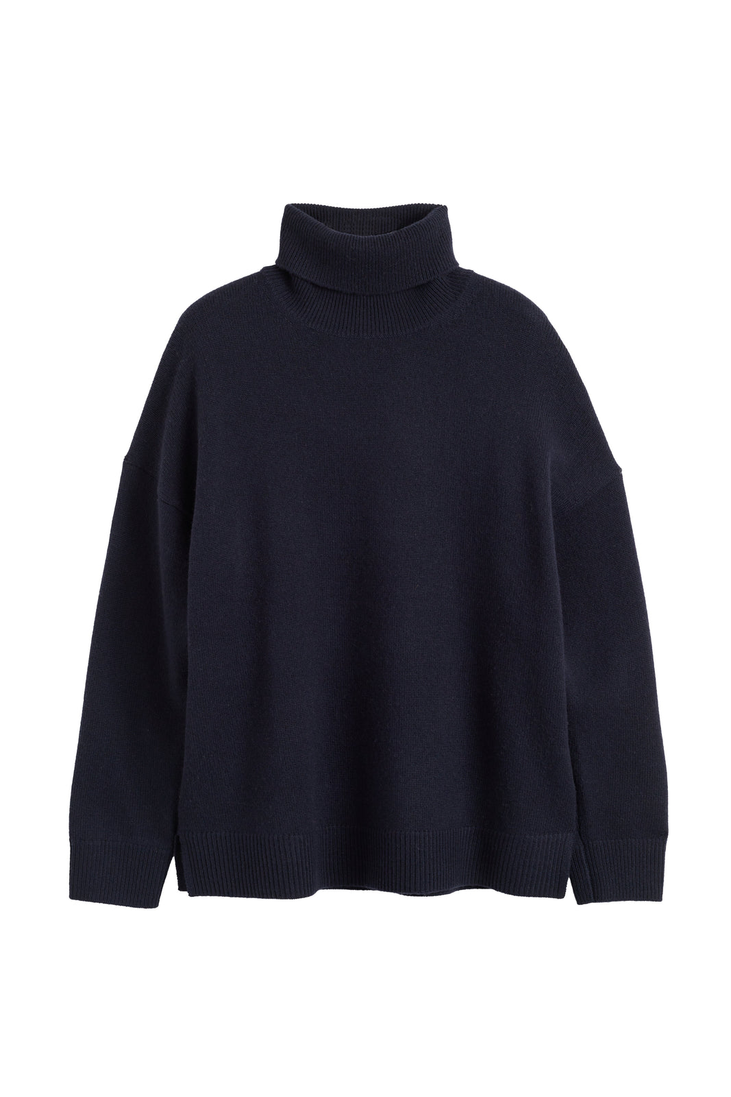The Navy Wool-Cashmere Elbow Patch Rollneck Sweater is a Classic.
