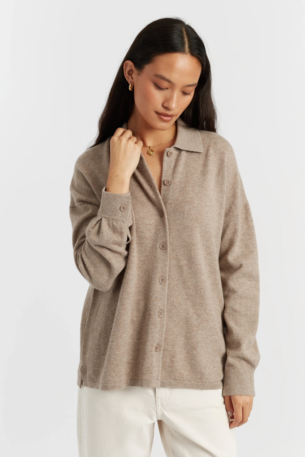 The Warm-Oatmeal Wool-Cashmere Relaxed Shirt is a relaxed.