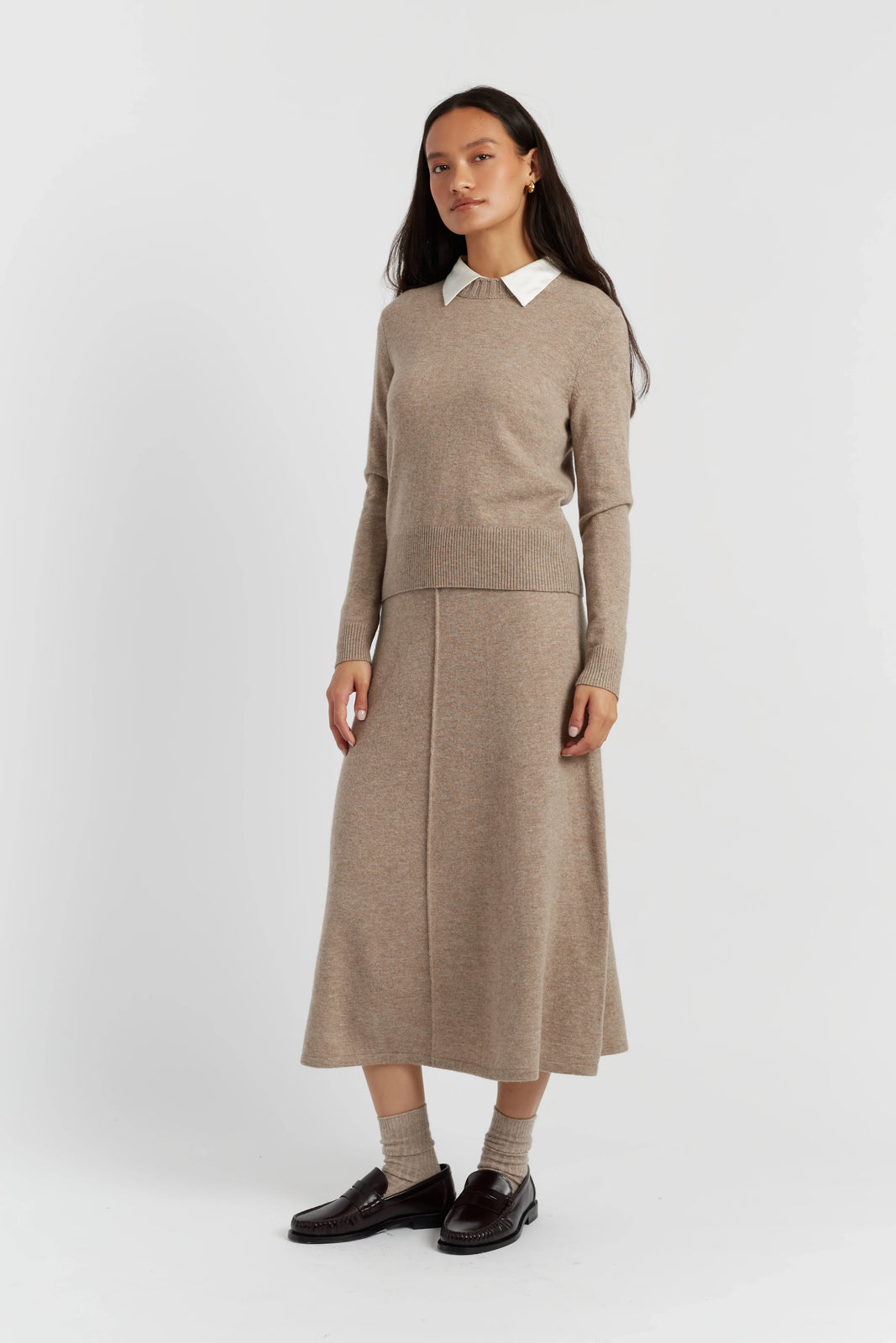 The Warm-Oatmeal Wool-Cashmere Cropped Sweater is a Cropped.