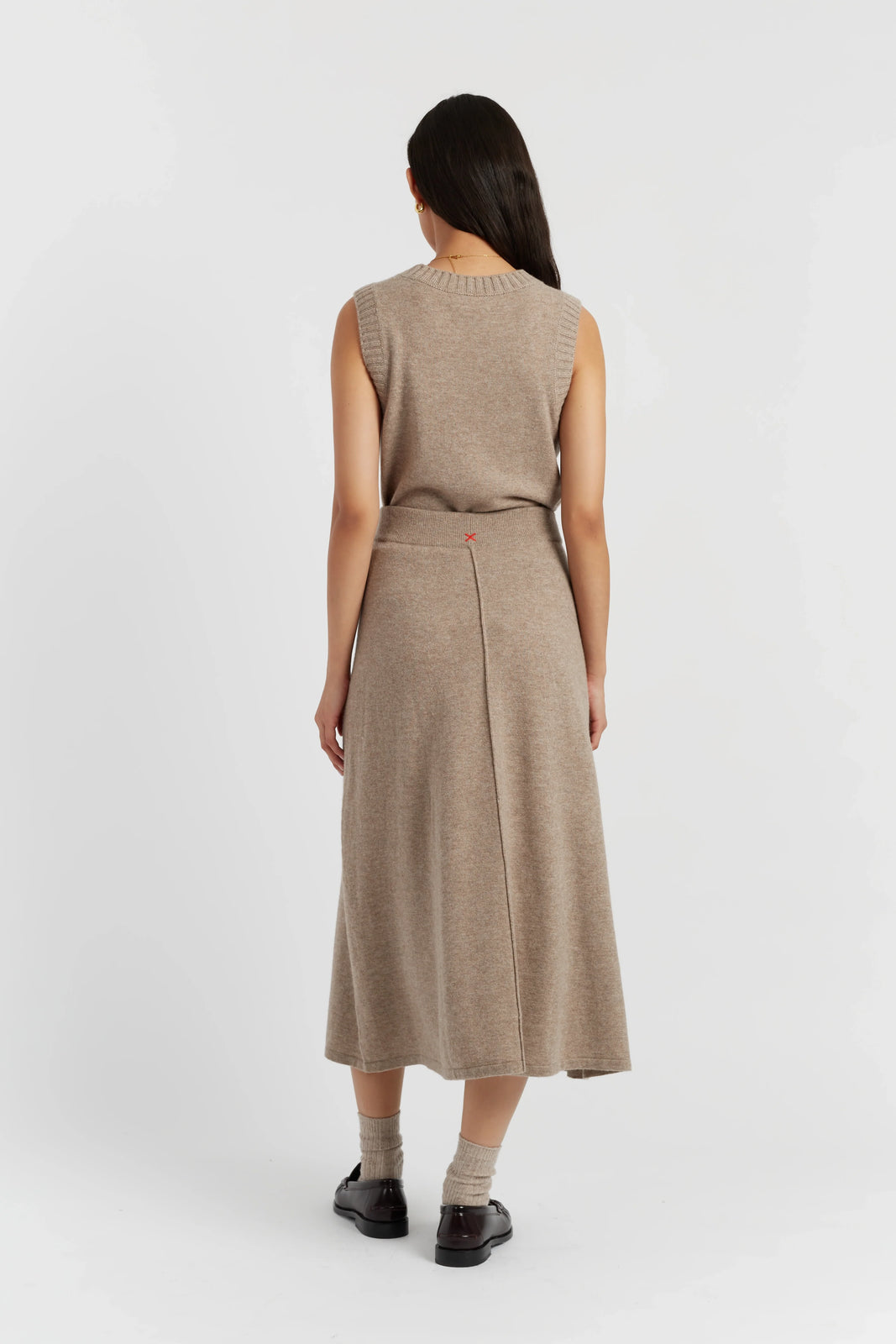 Warm-Oatmeal Wool-Cashmere Midi Skirt